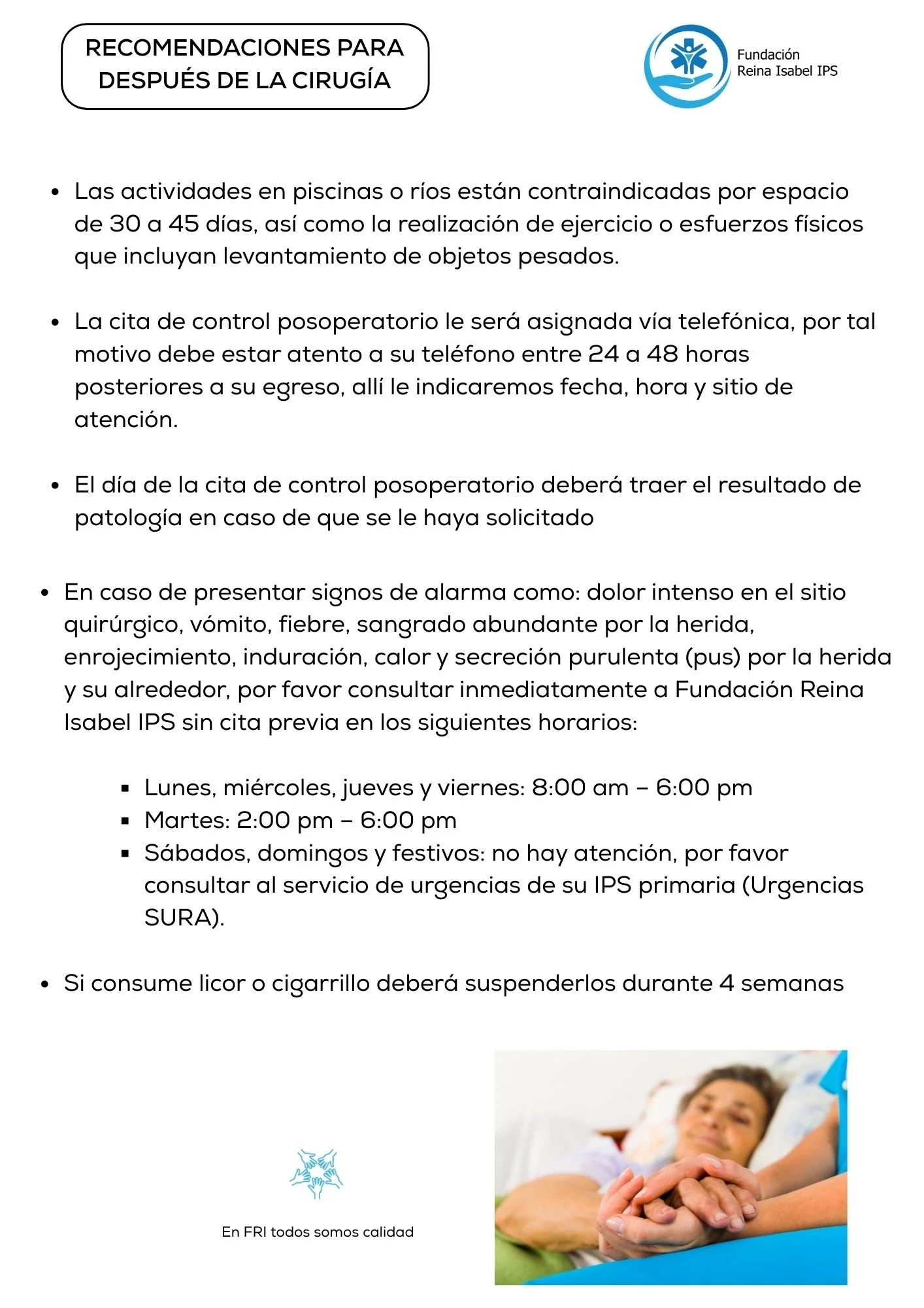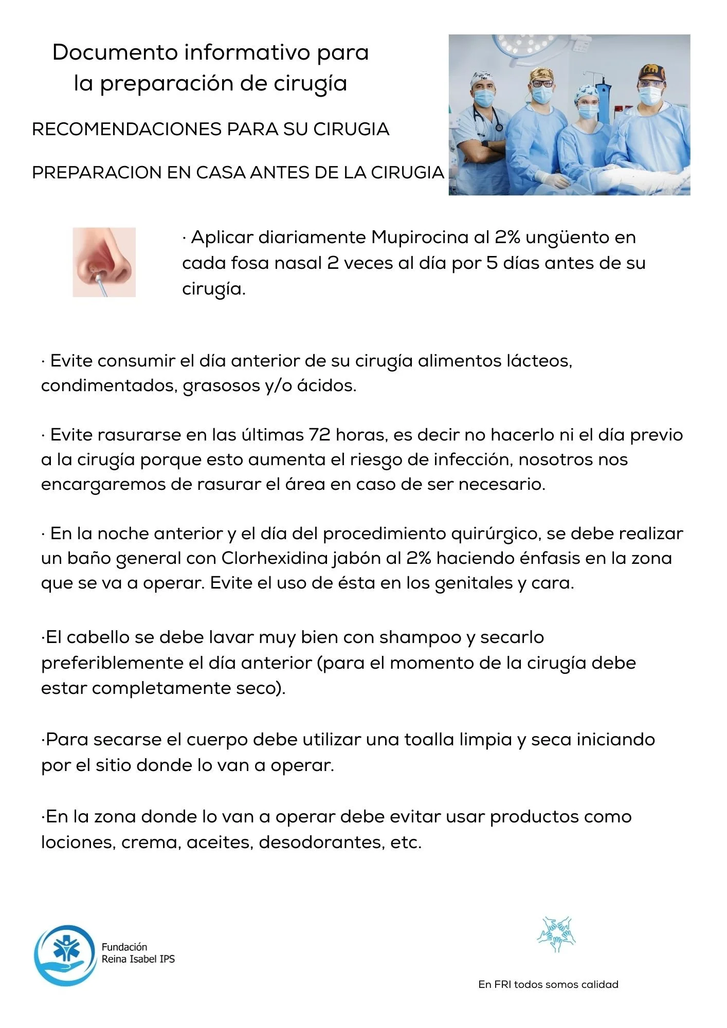 Importante información al usuario Importante información al usuario Importante información al usuario Recomendaciones para la preparación de cirugías Para descargar el archivo de preparación de cirugía Recomendaciones para después de la cirugía Para descargar el documento de recomendaciones